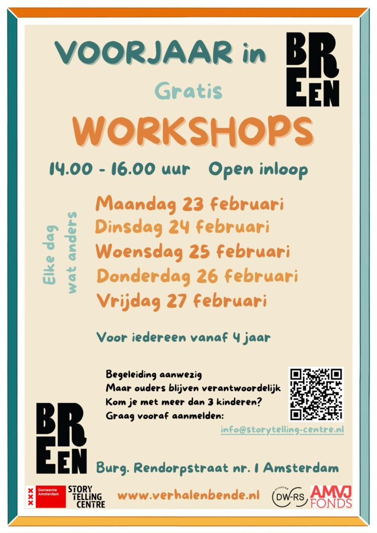 Voor kinderen vanaf 4 jaar. Open inloop, maar meld je met meer dan 3 kinderen even via de ticketlink of QR-code op de flyer!